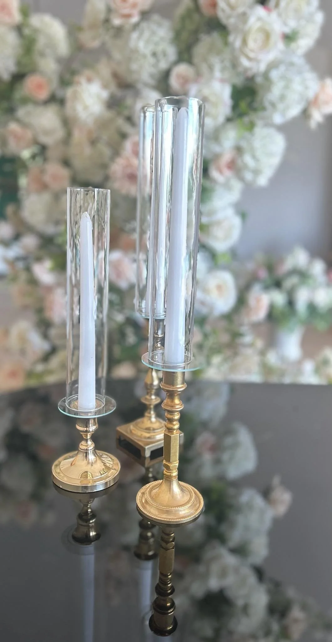 Touch of Luxury Jess Whiteaker 1/2/24 Touch of Luxury Jess Whiteaker 1/2/24 Brass Candlesticks with Glass Hurricanes (12) $145.00 / Day Read More